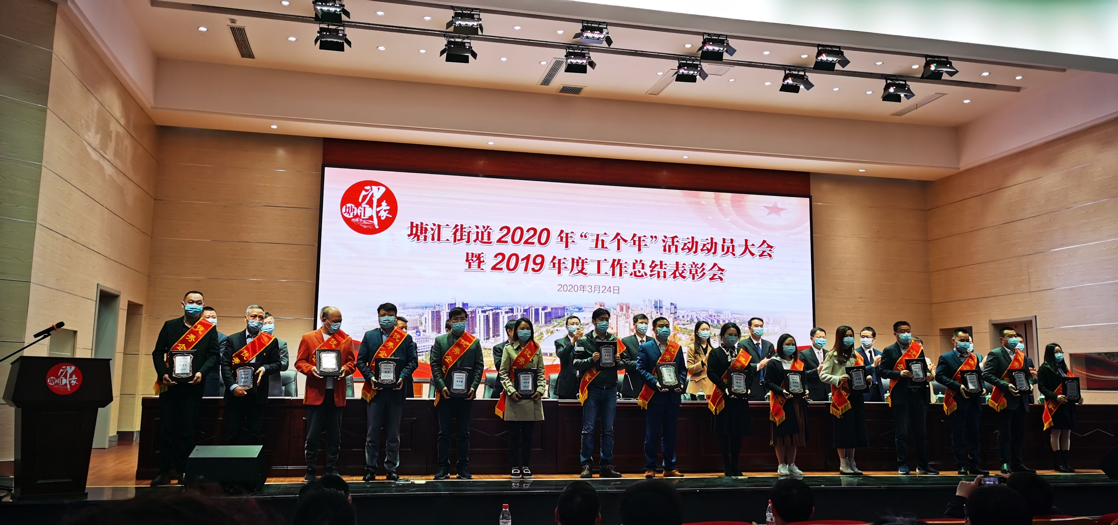 3月24日嘉兴市经开区塘汇街道召开2020年"五个年"活动动员大会暨2019年度工作总结表彰会议,公司荣获综合效益奖,施正锐荣获优秀企业家称号。